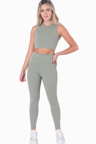 Conjunto legins y top Lycra estilo casual y con materias primas aptas al movimiento.