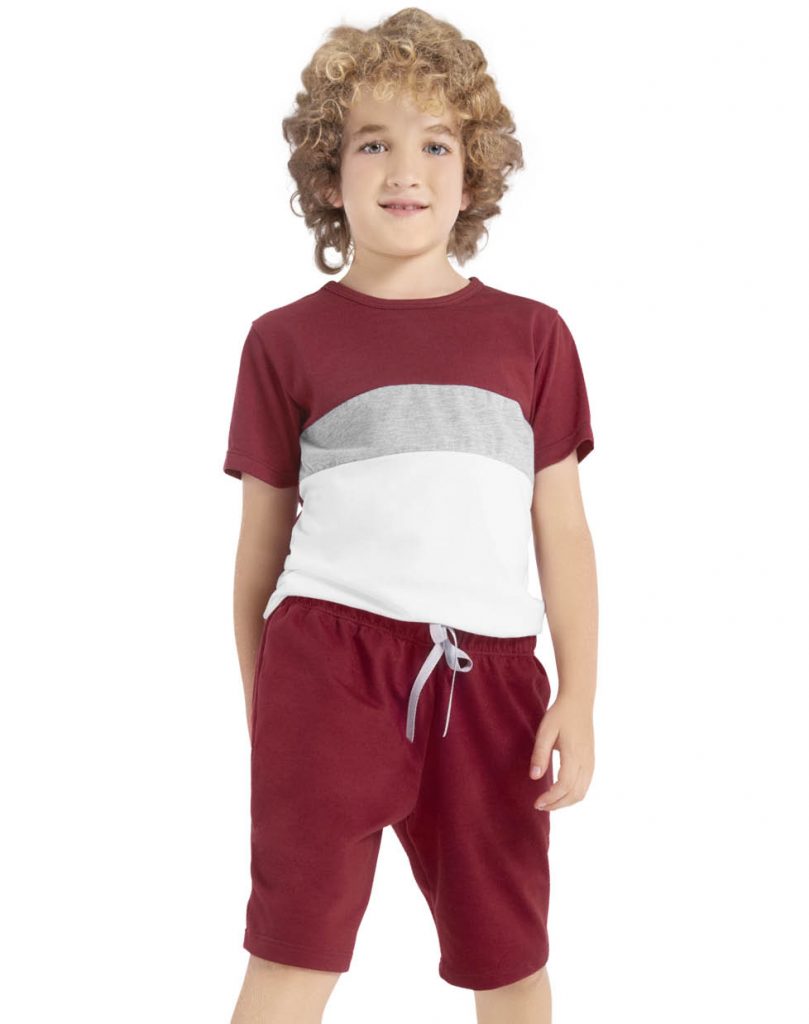 Conjunto con pantalón corto, cordón en cintura, en burda una tela fresca y resistente.